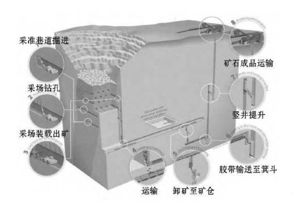 以瑞典基律纳铁矿为例。基律纳铁矿以产高品位(含铁率超过70%)铁矿石著名,是目前世界上最大的铁矿山之一。其铁矿开采已有70多年的历史,现已由露天开采转为地下开采。基律纳铁矿智能化主要得益于大型机械设备、智能遥控系统的投入使用,以及现代化的管理体系,高度自动化和智能化的矿山系统和设备是确保安全高效开采的关键。